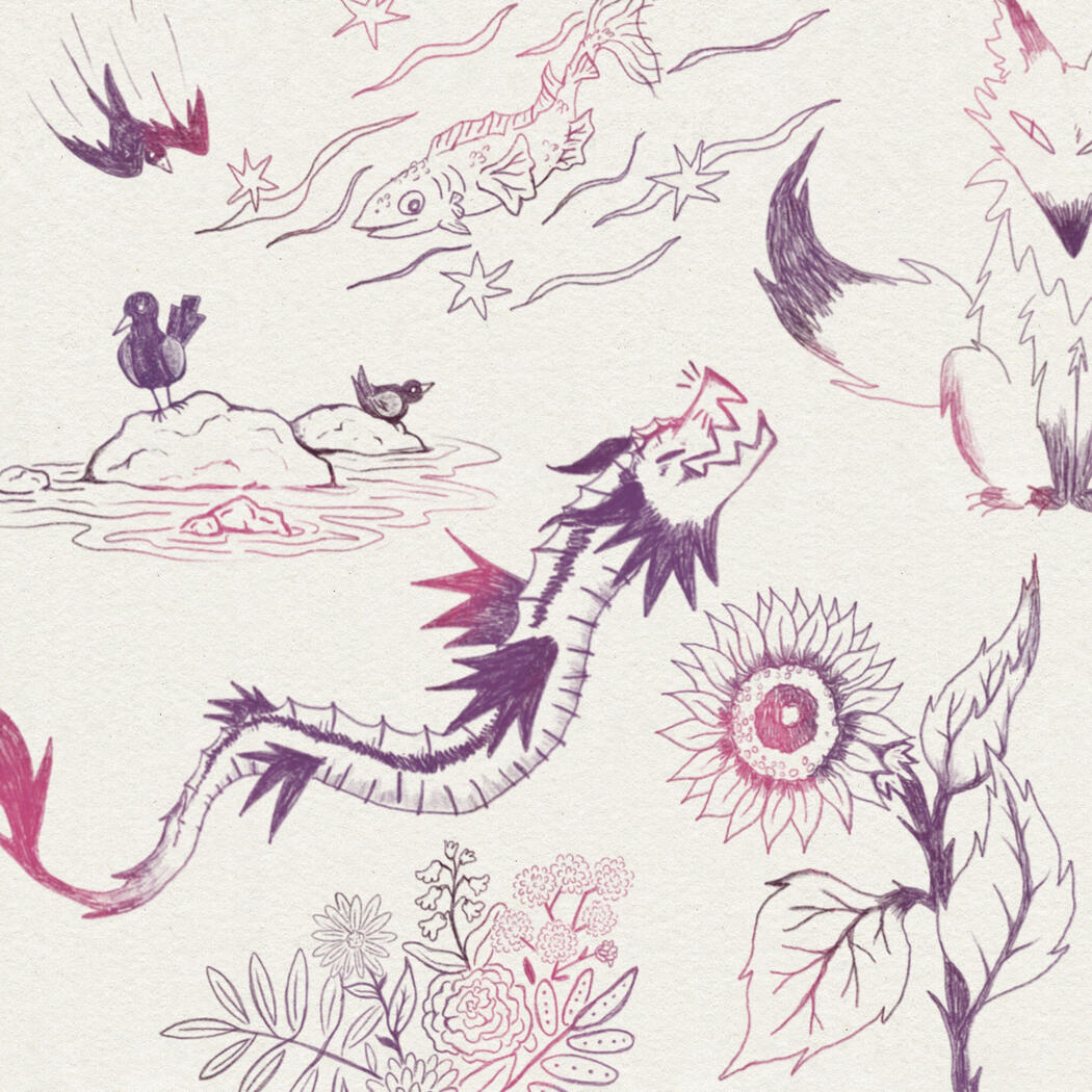 Encre, Craie grasse, crayons de couleur, mine, feutre ou encore digital, j'aime expérimenter et voir ce que les techniques multiples ont à apporter.